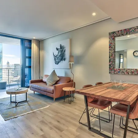 Elegant Apartment In The City Kaapstad van 70 m^2 ligt binnen 600 meter van Kaapstad treinstation en biedt snelle toegang tot Greenmarket Square. Het appartement biedt uitzicht op het zwembad.